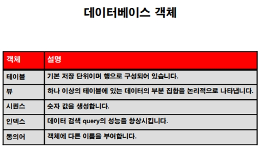 *데이터 베이스 오브젝트(객체) 5가지