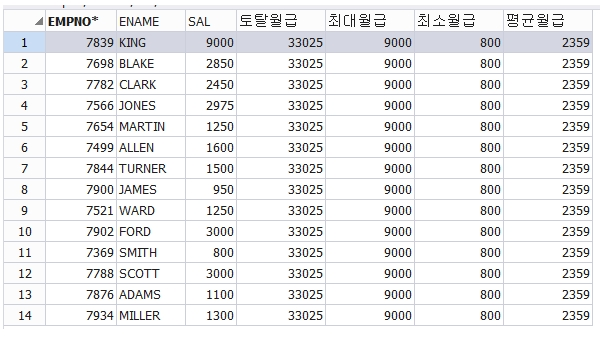 (select min(sal) from emp)최소월급,