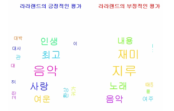 문제252. 라라랜드의 긍정적 평가 게시판의 글들을 명사만