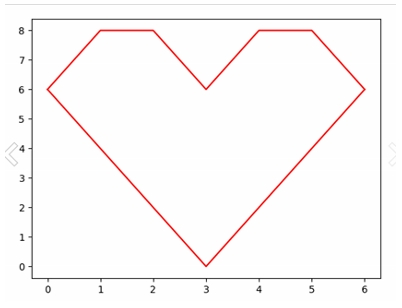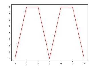 plt.plot([6,8,8,6,8,8,6],color='red')
