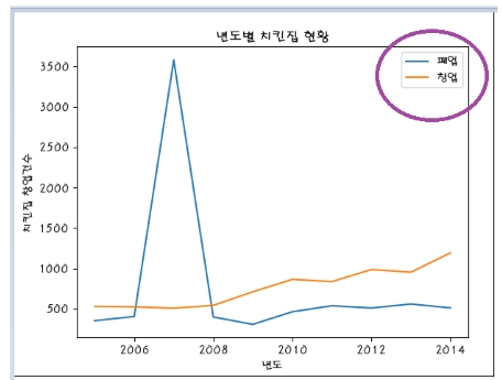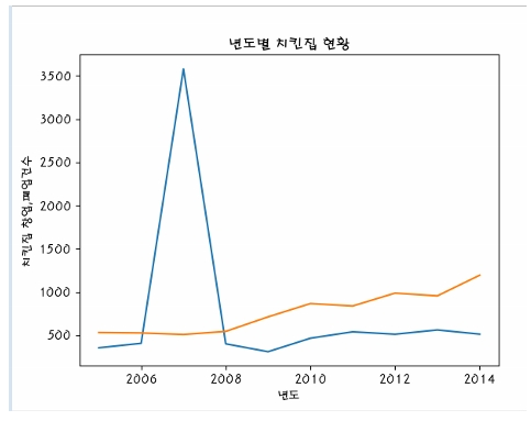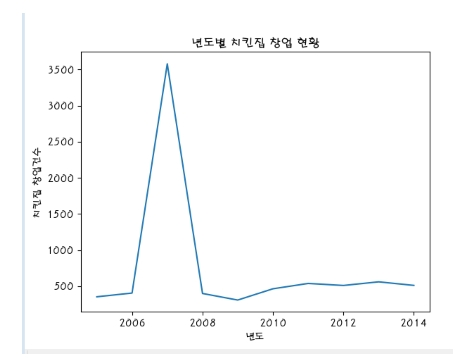 문제21. 치킨집 창업현황을 라인그래프로 시각화 하시오