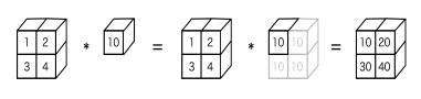 이 경우도 1차원 배열 b를 브로드캐스트 해서 a과 똑같이 2x2 행렬로