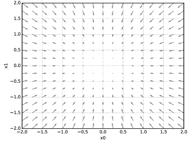 "경사법에서는 기울기(경사)값을 기준으로 나아갈 방향 결정."