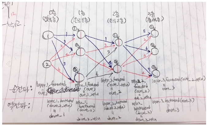 dout = layer.backward(dout) #layer에 들어있는 해당함수의 backward가 돈다