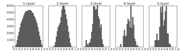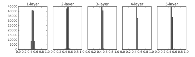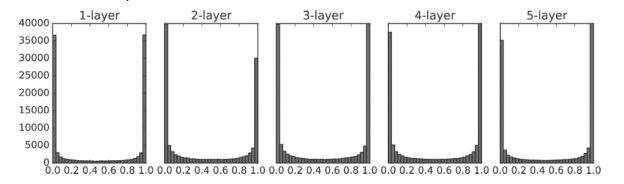 가중치 초기값이 너무 작거나 너무 크면 극단적으로 몰리는 가중치값을 얻게된다.