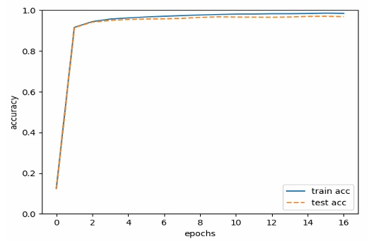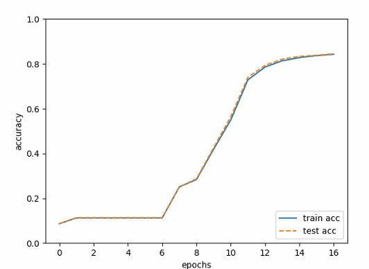 어제만든 오차역전파 3층 신경망에 SGD 경사감소를 입히고 학습시켜보시오