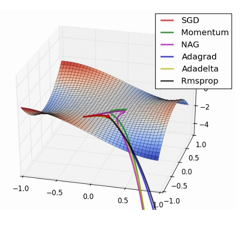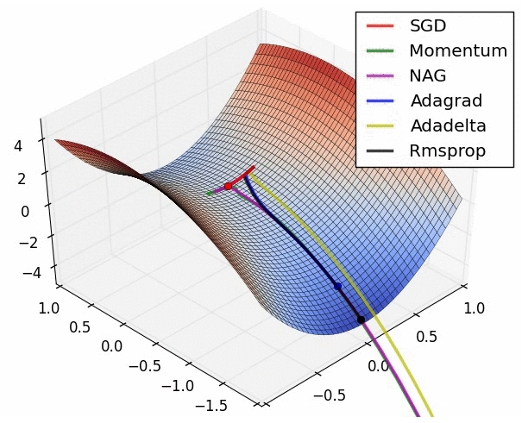 (가속도 이용) (각 매개변수마다 학습률 조정)