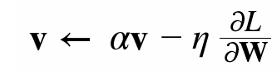 momentum : W <--- W + v(속도)