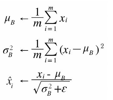 *공식은 정규화 공식이나, 미니배치가 표본값이라 결국 구하는 값은 표본값이다.